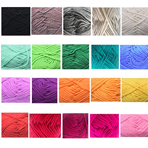 - This knitting yarn is made from 100% premium acrylic. One pack contains 20 colors as shown on the picture, not random color.