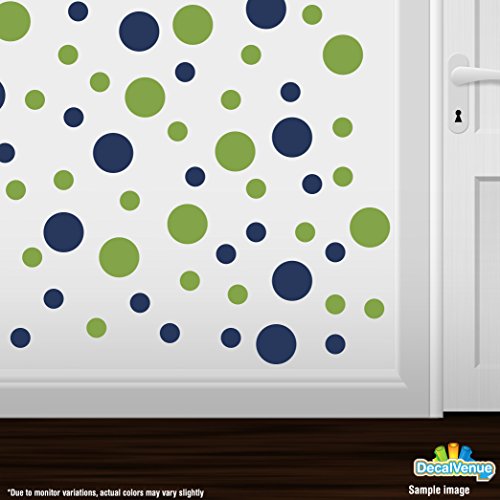 Set of 150 Circles Polka Dots Vinyl Wall Decals (Lime Green / Navy Blue)