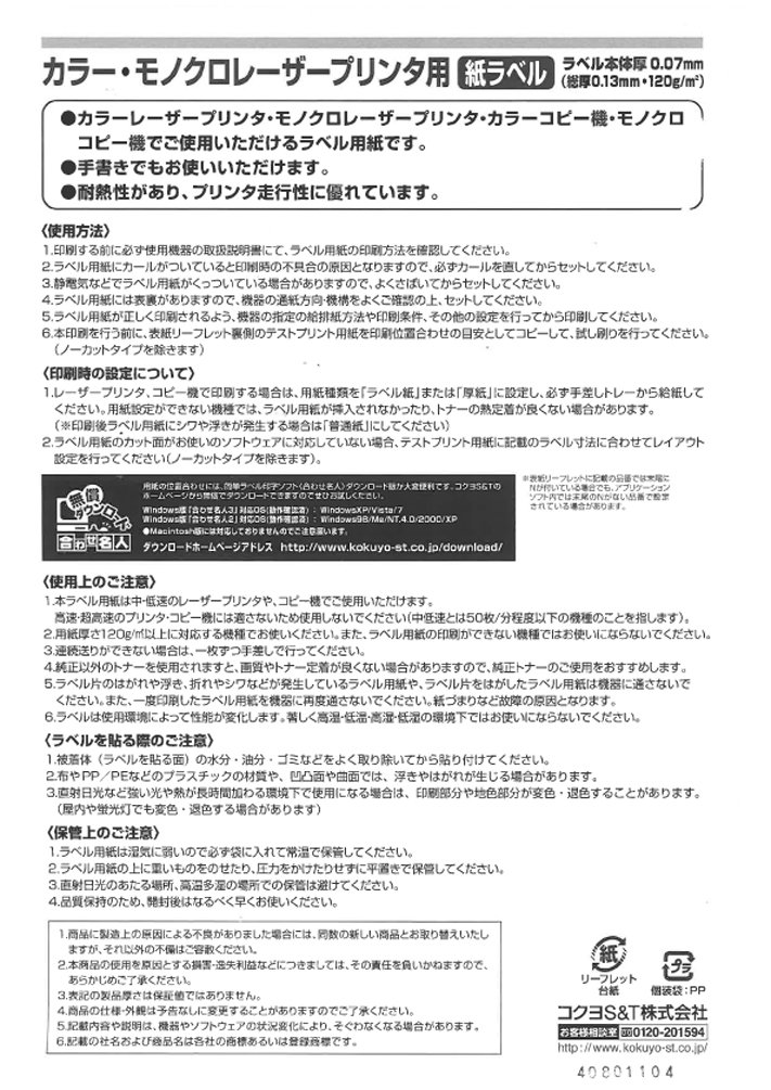 100 pieces of LBP-F196 A4 27 face Kokuyo color laser and color copy paper label (japan import)