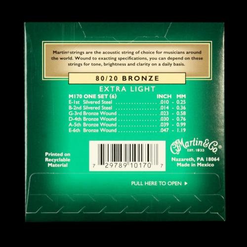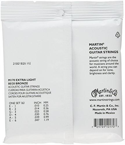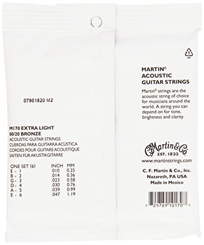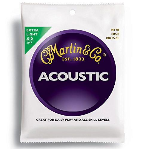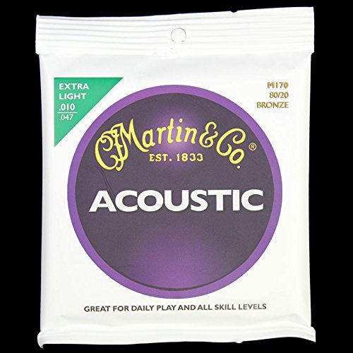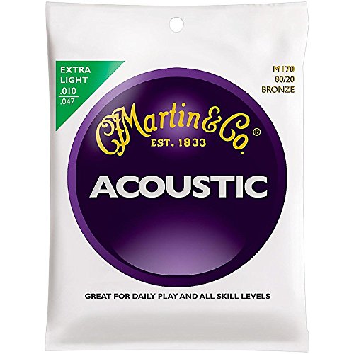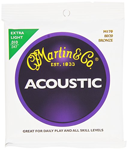 ReleaseDate : 2010-08-20 Studio : C.F. Martin Co. Publisher : C.F. Martin Co. Binding : Electronics Product Description Martin M170 80/20 Extra Light Acoustic Guitar Strings employ a composition alloy to give brilliance, clarity, and longevity of sound. The bronze winding is ideally suited for making strings that have deep, rich basses and clear, bright trebles. 0