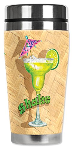 Mugzie 722-MAX "Tropical Drinks" Stainless Steel Travel Mug with Insulated Wetsuit Cover, 20 oz, Black