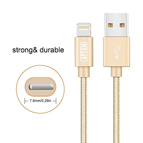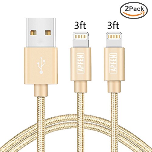 APFEN Nylon Braided Lightning Cable [2 Pack] USB Cable Charging Cable for iPhone 6s 6 Plus 5s 5c 5, iPad Pro Air 2, iPad mini 4 3 2, iPod touch 5th gen / 6th gen (3ft, Gold)