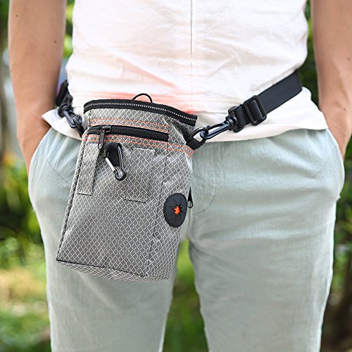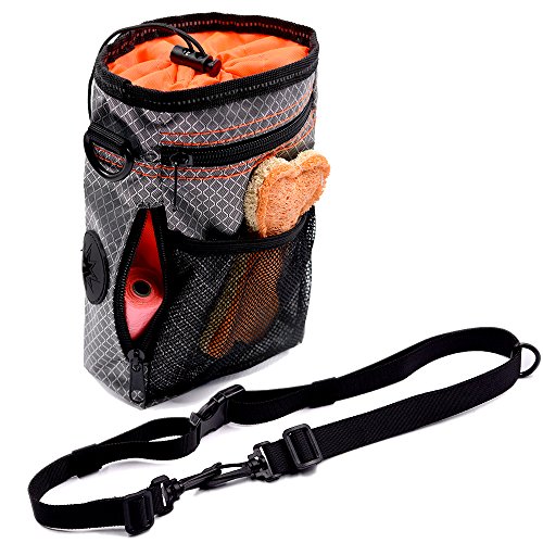 Finally, the Joymixx Dog Treat Training Pouch meets all the needs of active dog lovers. This lightweight bag provides a new level of freedom while taking your dog out by providing the perfect spot to store kibble, toys and treats in a convenient and easy-to-carry pouch. This innovative design attaches securely around your waist, belt or shoulder to give you quick access right when you need it and has conveniently-sized compartments for all of your training accessories. Plus, the zippers and drawstring keep everything secure even on the most adventurous of excursions. This pouch is so innovative, it even includes a poop bag dispenser at the bottom for handy and quick waste storage. Treat yourself with easy access to everything you and your pup need on every journey.