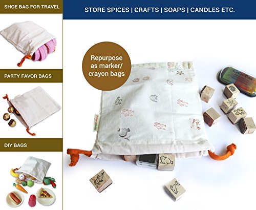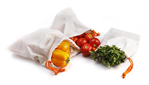 - Set of 6 - Two each of Small, Medium and Large Bags with drawstring. Go Green with our all organic, natural, reusable & bio-degradable organizer set