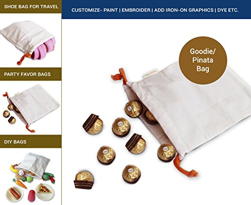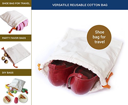 PreserveNext Reusable Multi-purpose Organic Cotton Bags - For Crafting | Knitting | Party Favors | Pinata Bags | Loot Bags | Gifts | Goodies– 6 Pack (2 each of Small, Medium and Large)