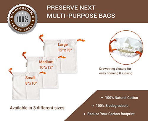 - Constructed with heavy-duty Organic 6oz Canvas-Cotton, the PreserveNext multi-purpose bag is perfect for storing spices, crafts, soaps, candles, etc