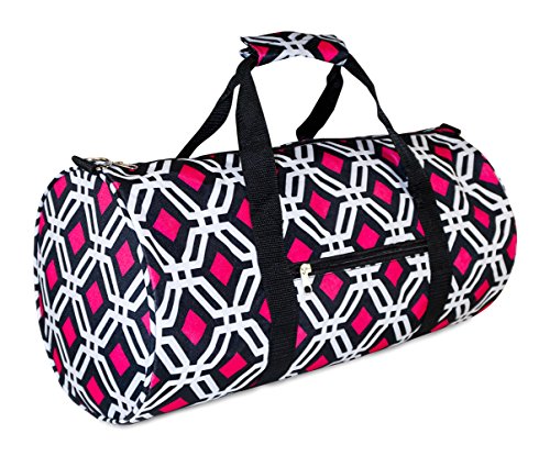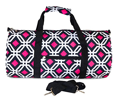 Product Description Don't get lost in a sea of black gym bags! Stand out in style with this fun print! This piece of lightweight luggage is great for gym workout enthusiast and can be used for a quick, close by staycation or for a weekend excursion to your favorite retreat. It's chic and fashionable design makes it a perfect choice for transporting gear for dance teams and cheer squads too! Also makes an ideal personality flaunting gym bag! You can carry your cute duffle by its included durable, detachable shoulder strap or slide it easily over the handle of a rolling suitcase for stress-free and efficient, stylish transport. Fully lined with black linen, keeping it clean is easy! Never lose your boarding pass, ID, or other smaller items with an exterior zipper pocket on the front of this security checkpoint friendly bag. 0