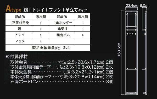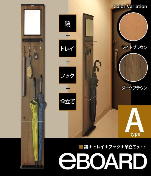 | ドア、玄関ユニット家具、壁面など、ちょっとしたスペースに簡単に設置でき、狭い玄関スペースを便利にスッキリと整頓できます。取付も簡単で、設置したい壁面に専用金具をピンで固定し、化粧パネル(eBOARD)を、金具にはめ込むだけです。付属の両面テープを使えば、金属ドア等にも設置可能!! |