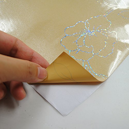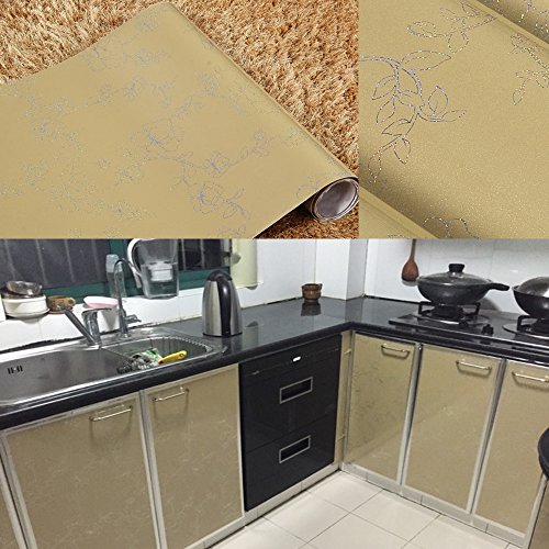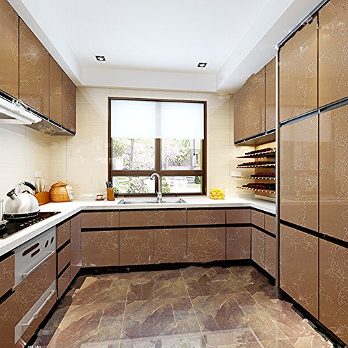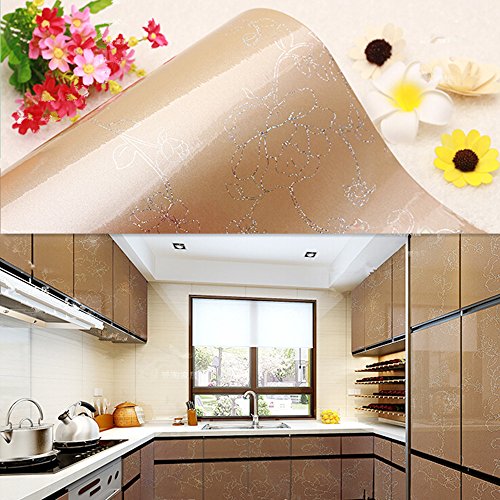 YIZUNNU Laser Champagne Peony Waterproof Kitchen Cupboard Cover Self Adhesive Wall Sticker,24x98 Inch