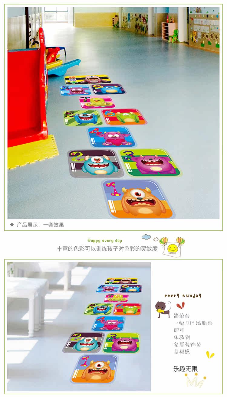 跳格子数字游戏卡通动漫宝宝儿童房幼儿园教室走廊布置墙贴纸地贴