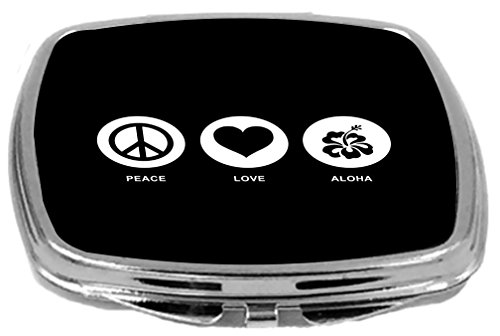 Rikki Knight Peace Love Aloha Design Compact Mirror, Black, 2 Ounce