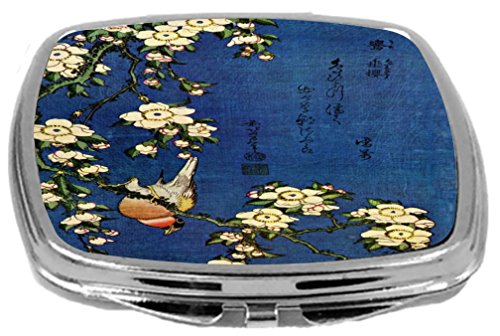 Rikki Knight Compact Mirror, Katsushika Hokusai Art Bullfinch and Drooping Cherry, 3 Ounce