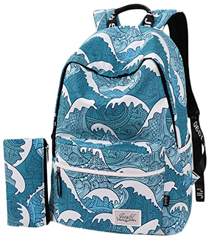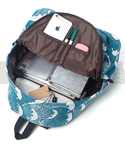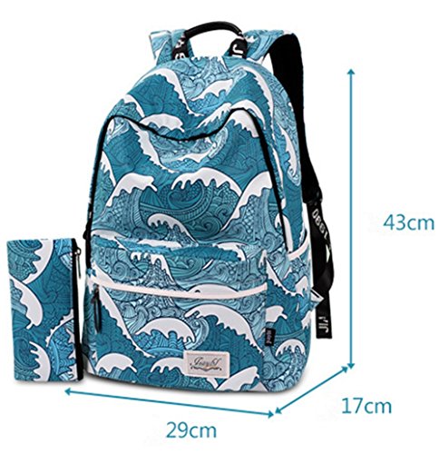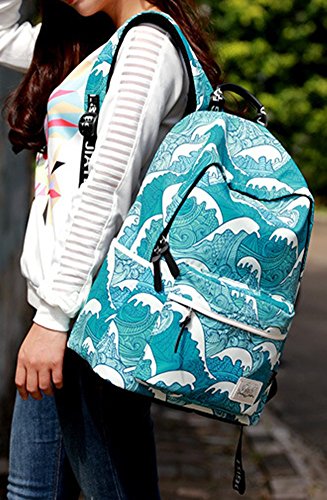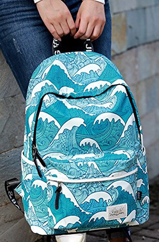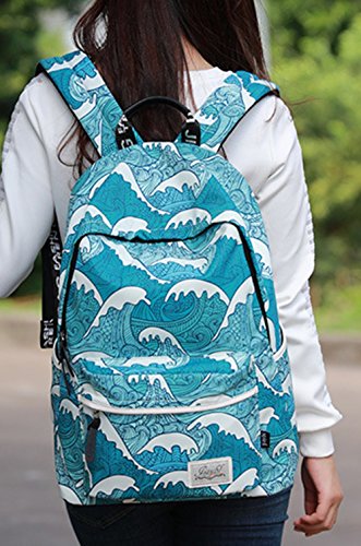 Studio : SPORSET Publisher : SPORSET Binding : Apparel Product Description Japanese Style Sea Wave Blue Cartoon Printed Backpack Preppy Style Polyester Travel School Bag