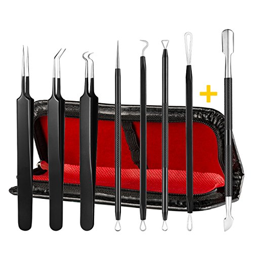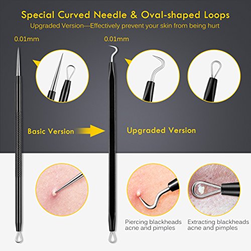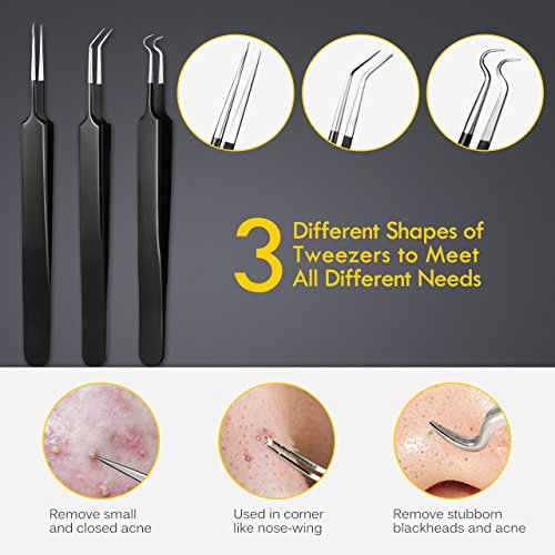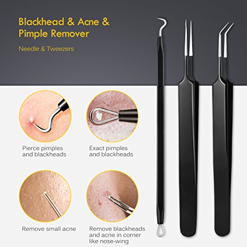 - 【BLACKHEAD REMOVAL KIT】: Includes 1 upgraded version of special curved needle and 1 basic needle, 3 tweezers with different shapes and 2 blemish extractors, easy to remove impurities such as acne, blackhead, pimple, etc.