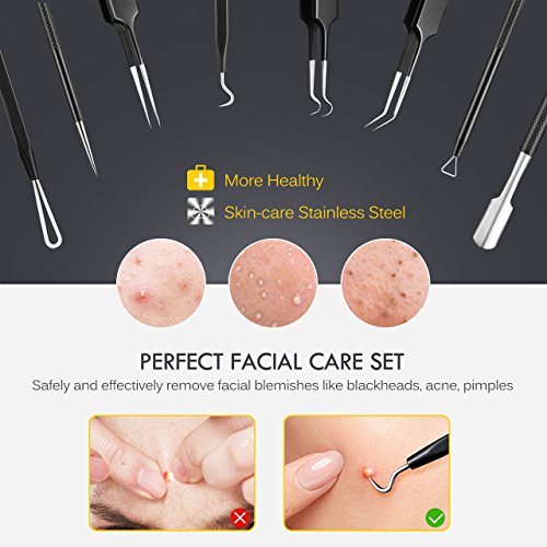- 【8-IN-1 MULTIFUNCTIONAL TOOL SET】: A unique daily care set includes blackhead removal kit with 7 tools and 1 tool of nail cleaner to meet your different needs of both facial care and nail manicure in daily life