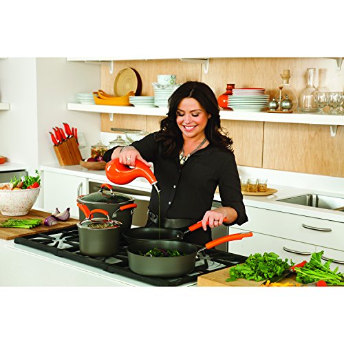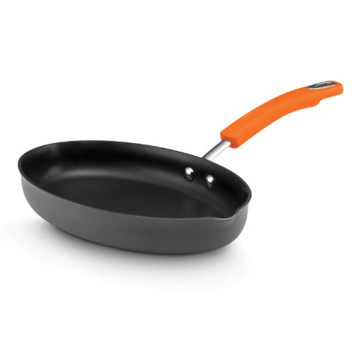 RACHAEL RAY HARD ANODIZED NONSTICK 11-1/2-INCH OVAL SKILLET, GRAY WITH ORANGE HANDLE