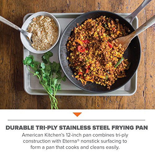 American Kitchen's 12-inch frying pan uses a PFOA-free Eterna® nonstick cooking surface to make this pan easy to use and clean.