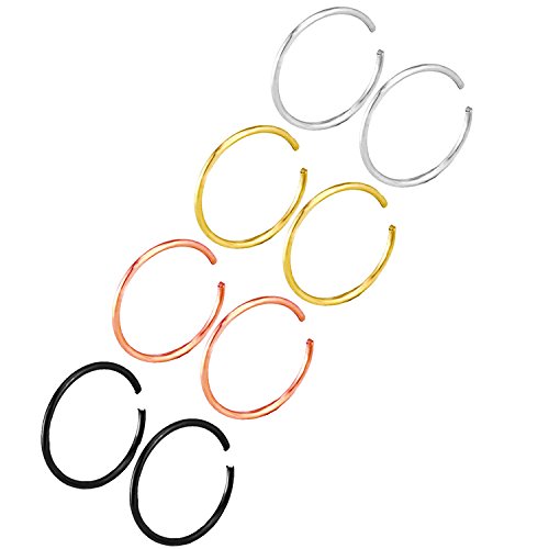 20G Stainless Steel Nose Ring Piercing Helix Cartilage Tragus Hoop Earrings (Steel, Gold, Rose Gold, Black)