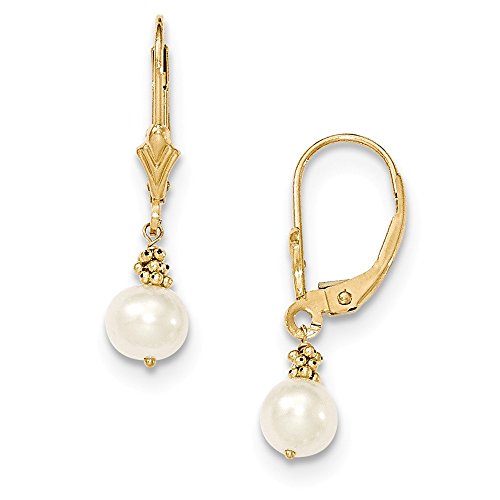 ICECARATS DESIGNER JEWELRY 14K YELLOW GOLD YELLOW 6MM SEMI ROUND FRESHWATER CULTURED PEARL LEVERBACK EARRINGS LEVER BACK FOR WOMEN
