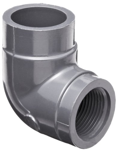 GF Piping Systems PVC Pipe Fitting, 90 Degree Elbow, Schedule 80, Gray, 1" NPT Female x Slip Socket