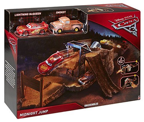 -. Binding : Toy -. Brand : Disney -. Color : Multi Color -. EAN : 0887961460636 -. Feature : Disney/Pixar Cars 3 movie stunt and racing set! / Multiple ways to play and recreate stunts from the movie / Highly detailed with authentic accessories / Launcher plus vehicle provide for thrilling out of box play / Connects to other Story Sets to expand the Cars movies' adventures. Other sets sold separately, subject to availability -. IsAdultProduct : 0 -. Label : Mattel -. Manufacturer : Mattel -. Model : FCV94 -. MPN : FCV94 -. PackageQuantity : 1 -. PartNumber : FCV94 -. ProductGroup : Toy -. ProductTypeName : TOYS_AND_GAMES -. Publisher : Mattel -. Studio : Mattel -. Title : Disney Pixar Cars 3 Midnight Jump Track Set -. UPC : 887961460636 -. Warranty : 1 year warranty against manufacturer defects