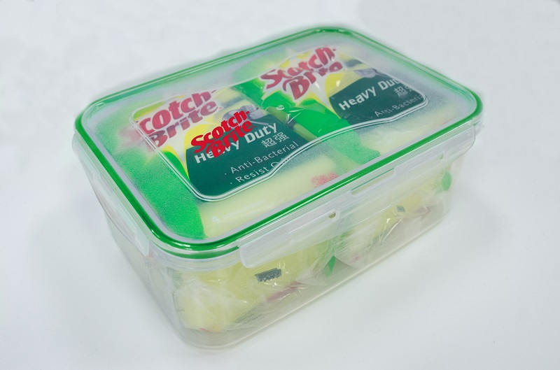 Scotch-Brite™ Antibacterial Sponge with a container is a value deal set to meet popular kitchen needs such as cleaning and storage more readily!