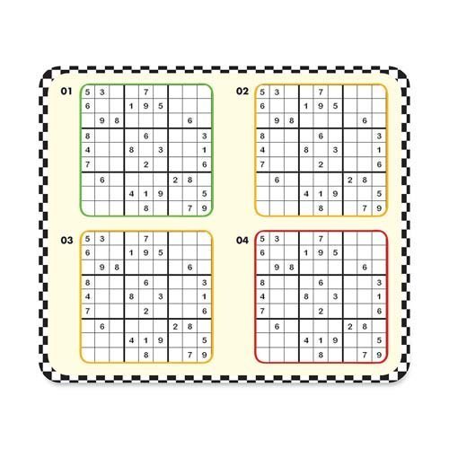 Sudoku Mouse paper offers an entertaining mousing surface. Remove the top sheet as you finish the puzzles for a clean mousing surface. Mouse paper is optical mouse-friendly with a nonslip backing. Each sheet display one easy, two medium and one hard puzzle. 24 sheets per pad.