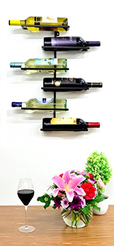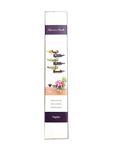 Superiore Livello Naples 6 Bottle Wall Mounted Wine Rack - Decorative Metal Shelf Storage with Modern Rustic Vertical Style in Black for Cellar, Party, Bar, Pantry - Sturdy Support and Rust-Free