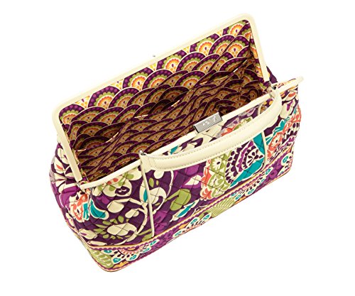 Dimensions 12 ¾" x 9 ¼" x 5 ¾" with 3" handle drop and 31 ½" removable strap Inspired by a throwback doctor bag shape, this new classic has a large interior that conveniently stays open while you hunt for your lipstick. Signature Vera Bradley colors lend a fresh take to this timeless Frame Bag style and are complemented by rich, supple leather.Feature