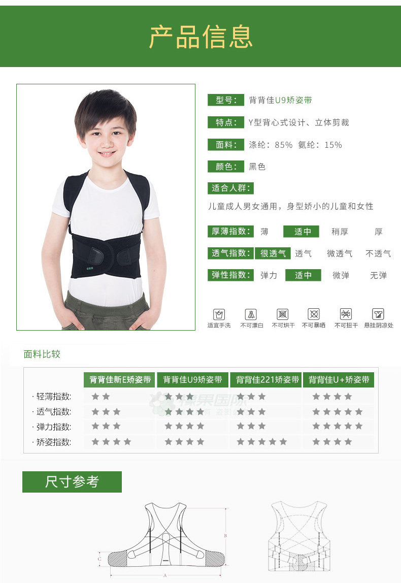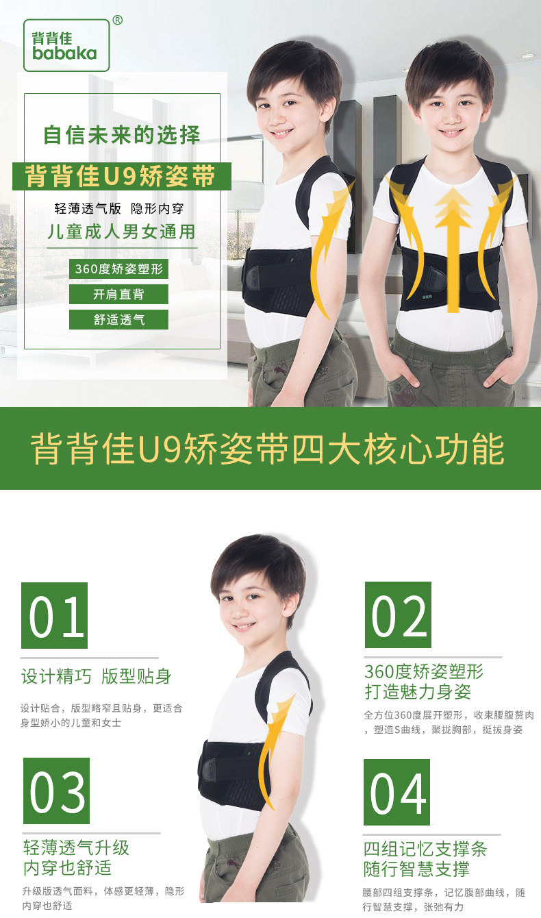 背背佳u9矫姿带成人儿童学生通用款男女驼背隐形矫正器透气脊椎