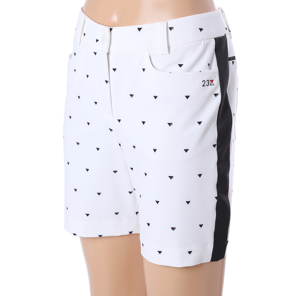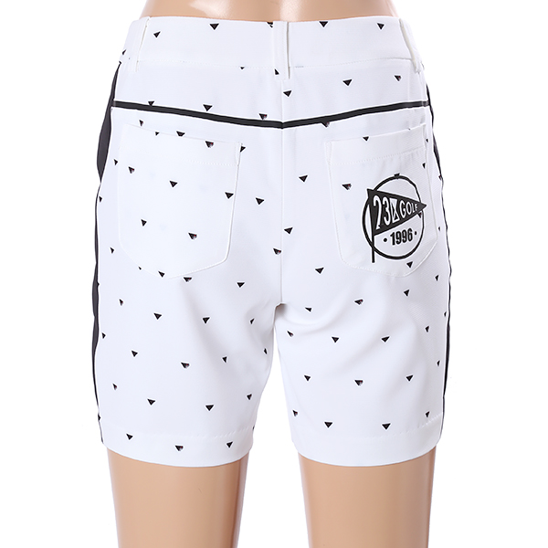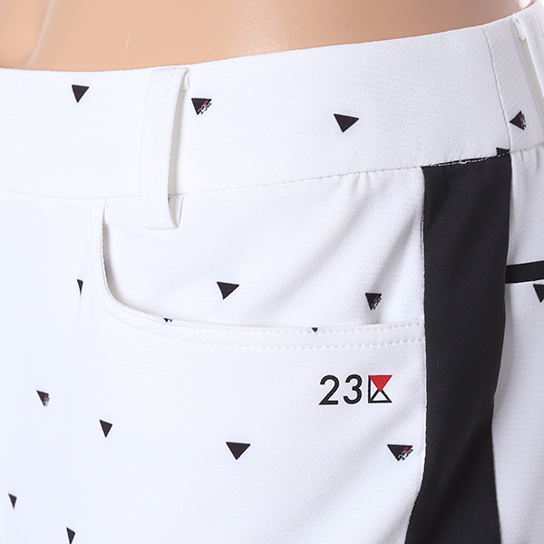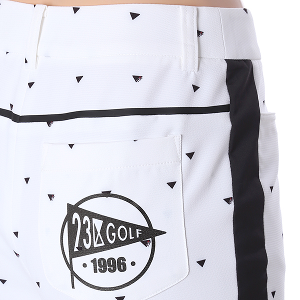 - 23구 삼각 모티브 프린트 팬츠 - 와끼 배색으로 포인트를 준 제품 - 뒷주머니 빅 로고로 포인트를 준 제품 |