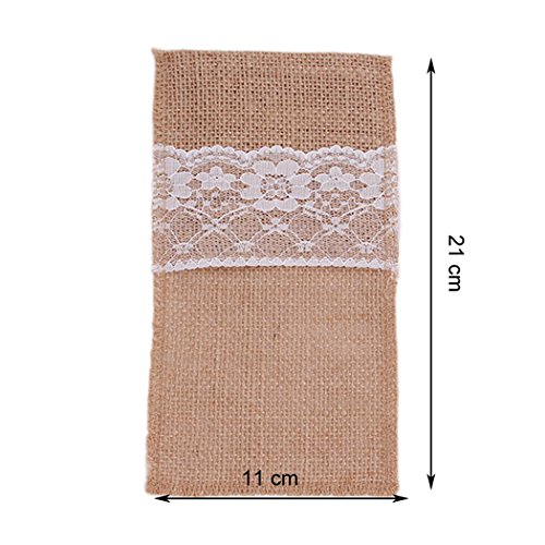 -. Feature : These charming utensil holders, made of both beautiful and burlap, add a whimsical and elegant touch to your plate settings. / Dimension: 11 x 22cm/ 4 x 8 Inches / This is a pack of 4 holders. 4x8 inches large and detailed with just a touch of lace, they accommodate all manner of forks, knives, and spoons. / It will compliment your shabby chic, rustic, barn, woodland, vintage or country wedding decoration. / One simple method of cleaning your burlap fabric is to simply shake them and hang them outside. The sunlight might bleach away lighter stains and odors can air out. Don't leave the burlap out in wet conditions, including fog. If two or three days time in the sun doesn't remove enough of the odor, sP.R.Inkle baking soda all over the burlap and leave the powder in place for at least a day to absorb the smell.