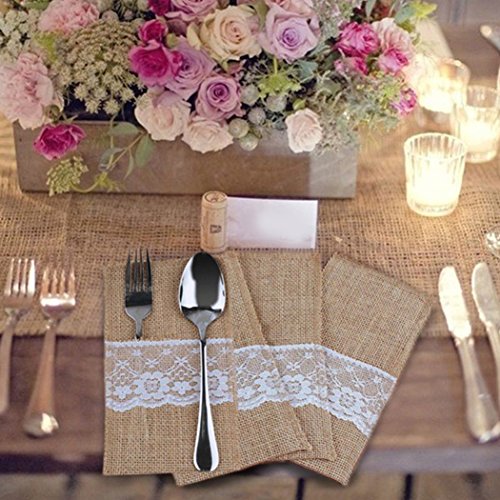 -. Title : Raylans 4Pcs Burlap Lace Utensil Holders Cutlery Pouch For Wedding Party Table Decorations