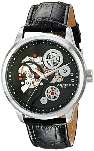 -. Title : Akribos XXIV Men's AK538BK Mechanical Stainless Steel Skeleton Watch with Black Leather Band