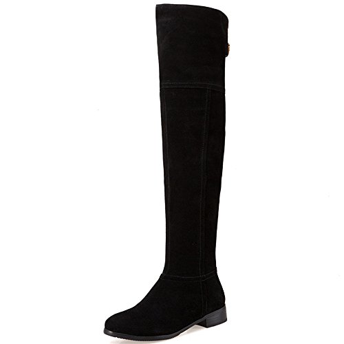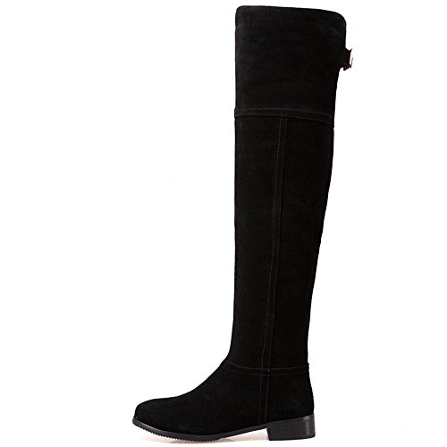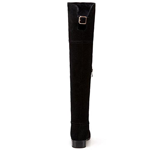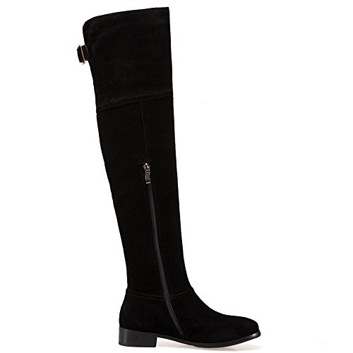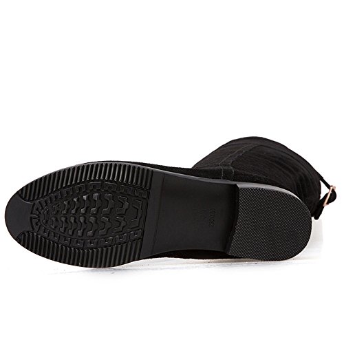 (Nine Seven)/Women's/Boots/DIRECT FROM USA/Nine Seven Suede Leather Women's Round Toe Chunky Heel Handmade Casual Over The Knee Boots