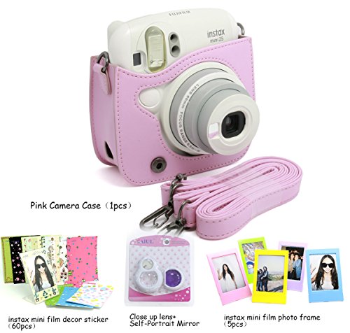 The Fuji Mini 25 26 Case Bag is super cute and the top is free-open-close allows you take photos easily. Picture frames, and film stickers borders to spruce up instax camera pictures. Instax mini 25 selfie lens takes nice pictures. There is so much here to peak creativity.