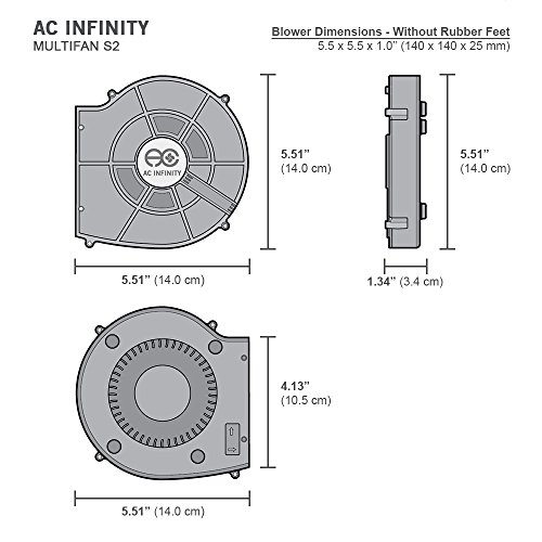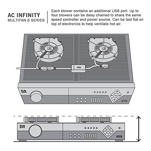 AC Infinity MULTIFAN S2, Quiet 140mm USB Blower Fan with Speed Control, for Receiver DVR Xbox Modem AV Cabinet Cooling
