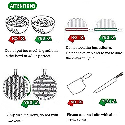 - ★NEVER CUT YOUR FINGERS AGAIN: This salad chopper bowl consist of cutting pedestal and chopping bowl. Never worried about cutting your fingers, cause you only need to cut along with several groove of the bowl which has prevent slippery effect.