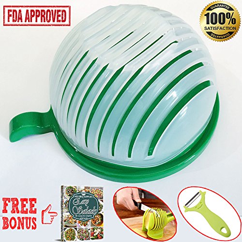 Premium 60 Second Salad Maker Cutter Bowl Enjoy Making Your Fresh Delicious and Healthy Salads with Perfect Vegetable Fruit Slicer Chopper Plus Tomato Slicer Fruit Peeler and Easy Salads Recipes Ebook