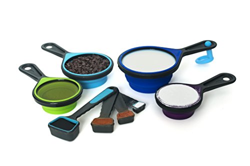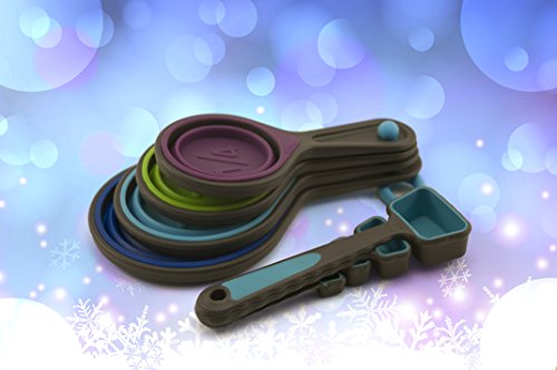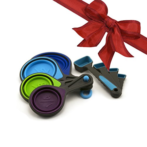 Collapsible Measuring Cups and Measuring Spoons - Portable Food Grade Silicone for Liquid & Dry Measuring