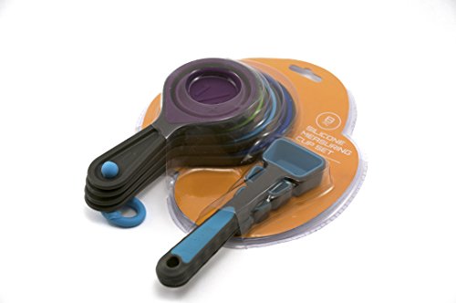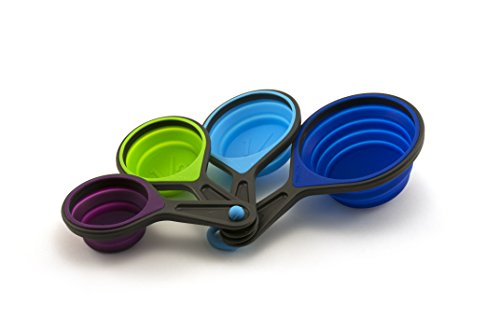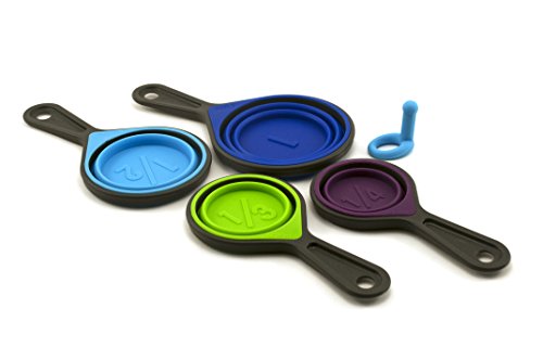 - 4 POPOUT SILICONE MEASURING CUPS : 1 Cup/250ml, ½ Cup/125ml, 1/3 Cup/80ml, ¼ Cup/60ml. Easily flatten squish cups for storage