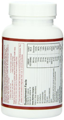 Vitamin C (ascorbates, ascorbic acid),B1 (thiamin HCL),B2 (riboflavin),B3 (niacinamide),B6 (pyridoxine HCL),B12 (methylcobalamin),Biotin,B5 (pantothenic acid from calcium d-pantothenate)Zinc (ascorbate),Copper (ascorbate),Hair Growth Complex: N-Acetyl-Cysteine, Horsetail Herb extract, Stinging Nettle leaf, Bamboo stem and leaf, Silica (total silica >65 mg). Hormone Balancing Complex: Phytosterol complex (includes beta sitosterol), kelp, L-tyrosine.Chinese Herbal Hair Complex: Fo-ti root, notopterygium root, rehmannia raw root, Eclipta herb, Ligustrum fruit, Chinese Peony root 4:1, Dong Quai root.AvailaBlend Bioavailability Complex: Sichuan Pepper, Ginger root, Black Pepper, Habanero Pepper.. Other Ingredients: Vegetable capsule, microcrystalline cellulose, silica.