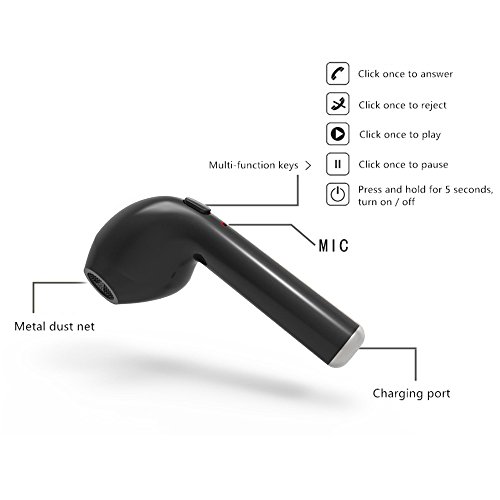 YILON Wireless 4.1 Bluetooth Kopfhorer, Mini Wireless Ohrhorer Single links In-Ear Earbuds Stereo Ohrhorer fur Apple iPhone 7 7 plus 6s 6s plus, iPad, Samsung Smartphone