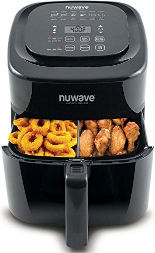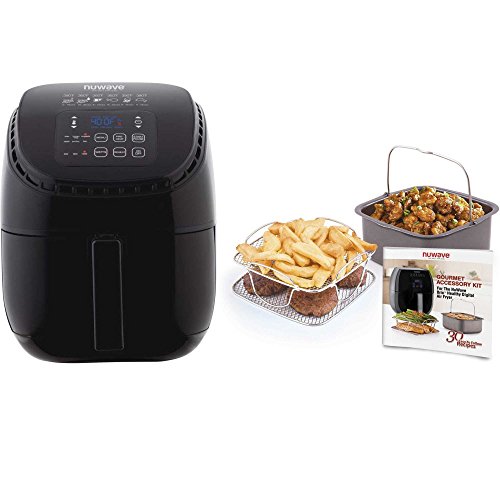 The NuWave Brio Digital Air Fryer has a extra large 6-quart capacity that is perfect to cook all of your favorite foods. The fry pan basket's non-stick coating, with no PFOA, ensures perfect results every time! With a basket that's easy to remove, the NuWave Brio Digital Air Fryer allows you and your family to have wholesome meals without having to compromise your countertop space.Feature