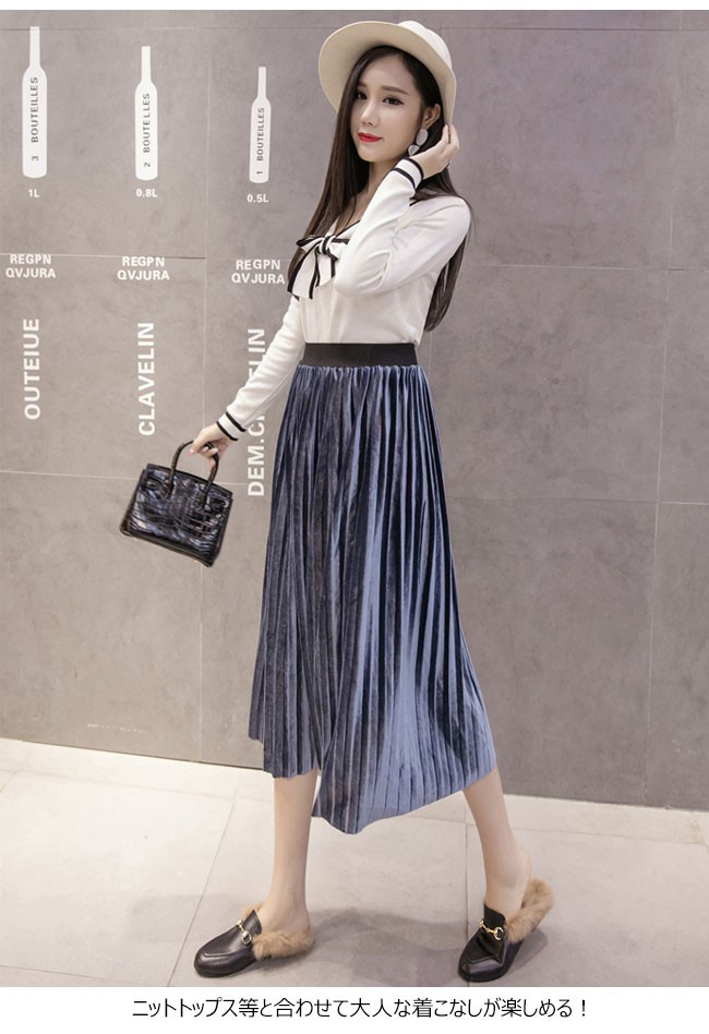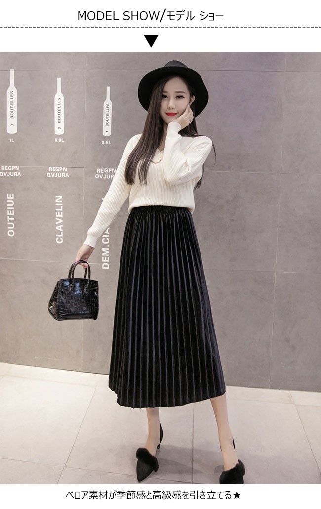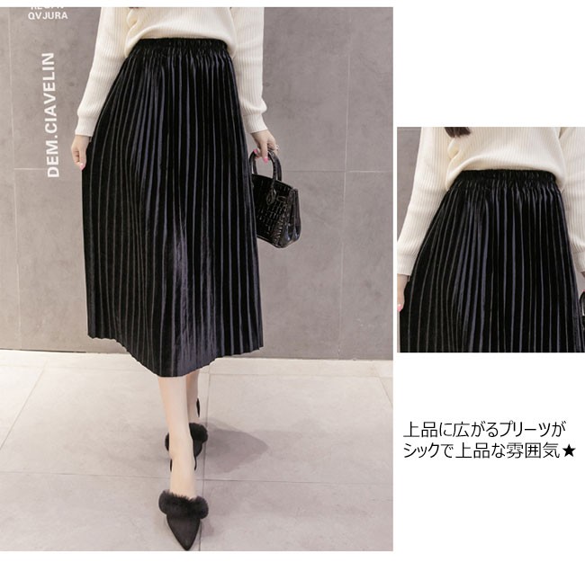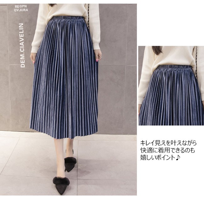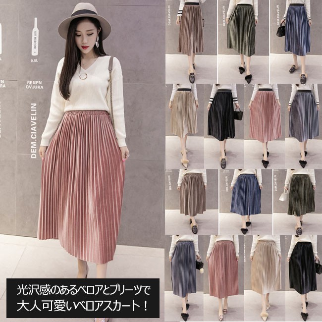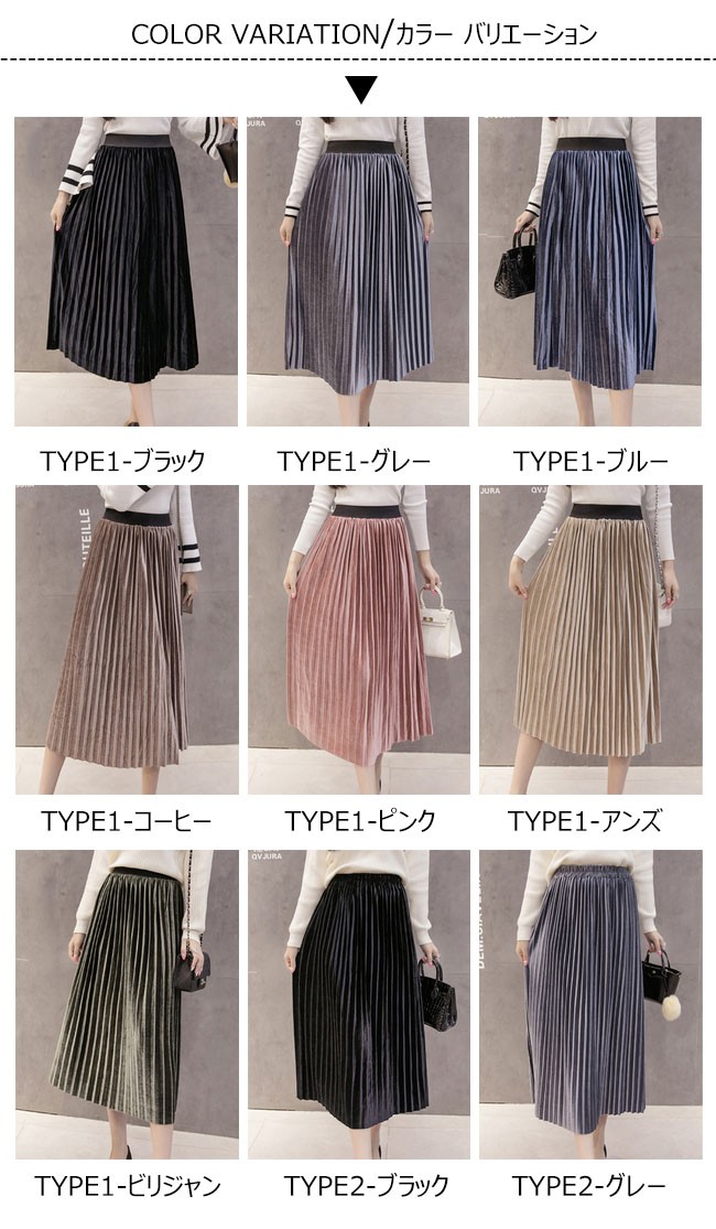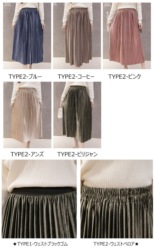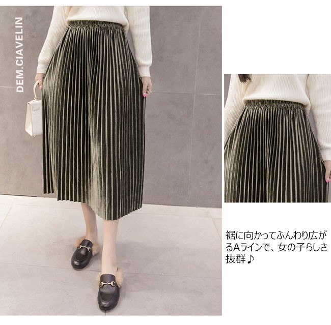 | 商品名 | スカート ベロアスカート レディース プリーツスカート フレアスカート Aラインスカート ミモレ丈スカート 無地 2TYPE 通勤通学 OL お呼ばれ 2017秋冬新作 |