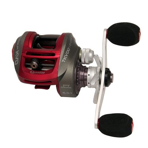 If you're looking for the ultimate power fishing reel, you found it. The Tour KVD, designed by and for 7-time B.A.S.S. Angler of the Year and 4-time Bass master Classic Champion Kevin VanDam. Features:- 11 PT bearings (10 + clutch)- Lightweight aluminum frame and side covers- Infinite ACS adjustable centrifugal cast control- Continuous Anti-Reverse- CSC carbon-fiber, stainless steel and ceramic drag system- High-capacity spool- Aluminum PT main gear and drive shaft- Laser-etched EVA handle knob Specifications:- Gear Ratio: 5.3:1- I.P.T: 25"- Line Capacity: 145 yds./12 lb.- Max Drag: 19 lbs.- Bearings: 10 + 1- Weight: 7.1 oz.- Retrieve: Left Hand.Feature