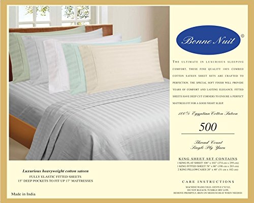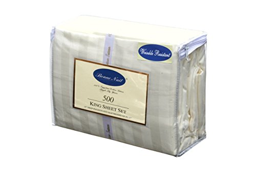 Bonne Nuit 500 Thread Count Hotel Collection Luxury Bedding Bed Sheets - Bestseller- Super Sale 100% Cotton Sateen - Wrinkle Resistant Sheet Set-King Size Stripe Ivory Color