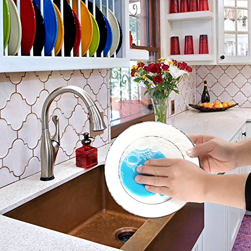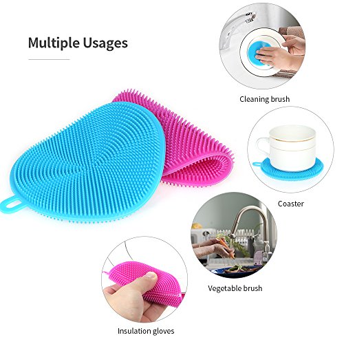 - 2.✔ MULTI-FUNCTION: The silicone sponges can be used in cleaning all kitchenware, glassware, fruits, these household cleaning sponges can be also used to clean makeup brushes and even you can use it for shower. Easy to hang with a hook. No space occupation, easy to dry and storage.