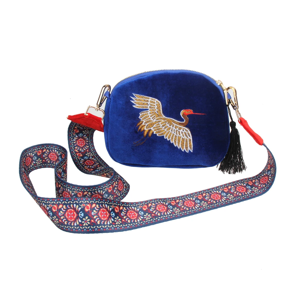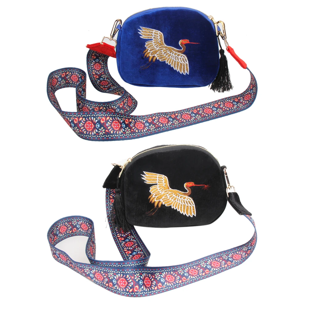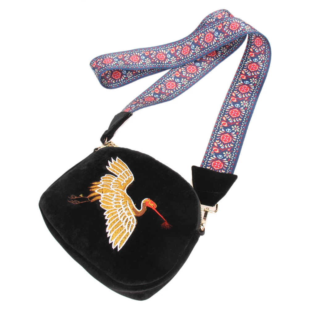 Fashion Mini Velvet Embroidery Crane Shell Bag