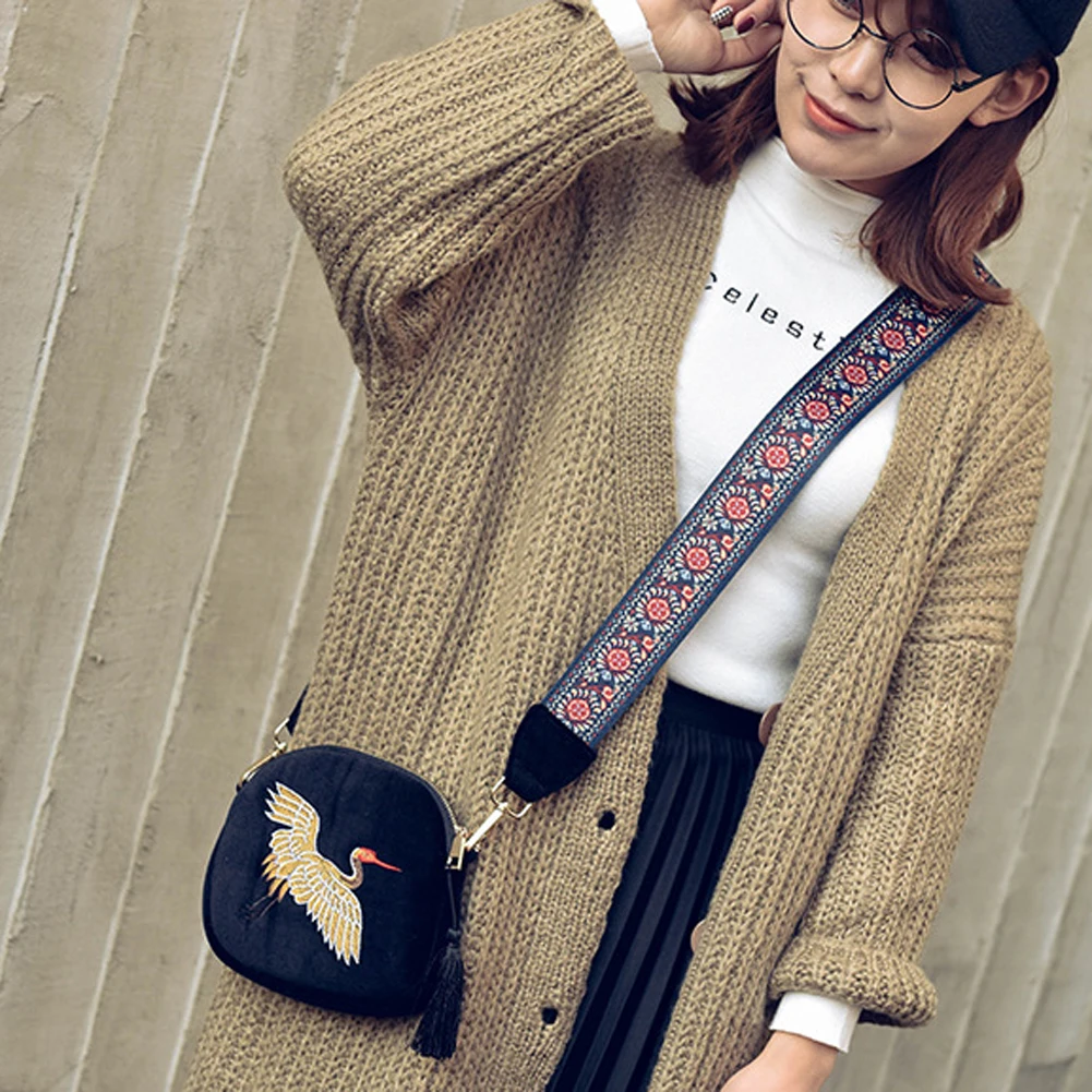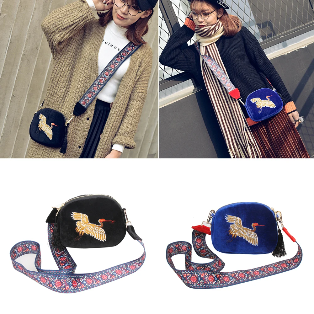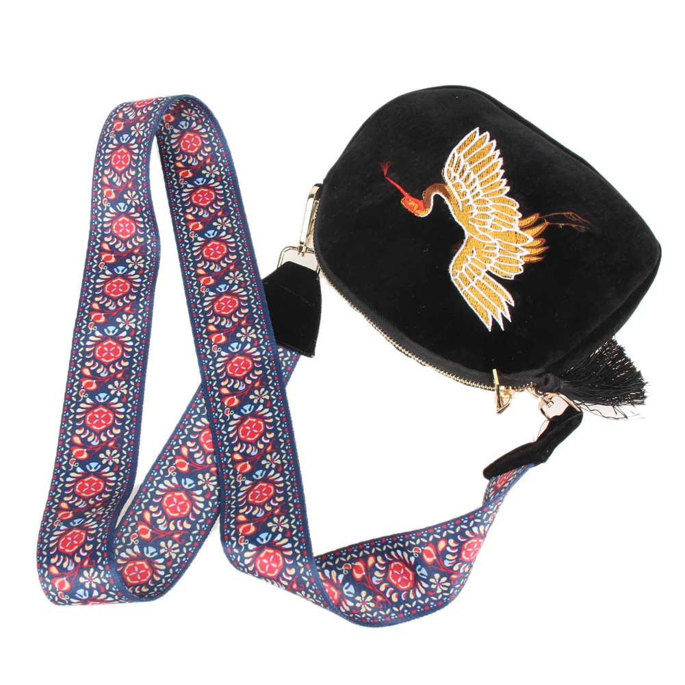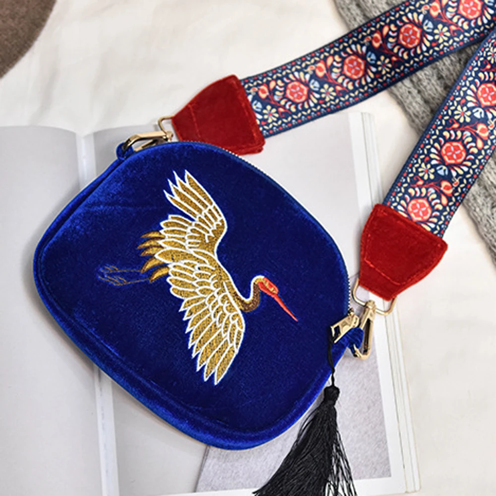 Fashion Mini Velvet Embroidery Crane Shell Bag